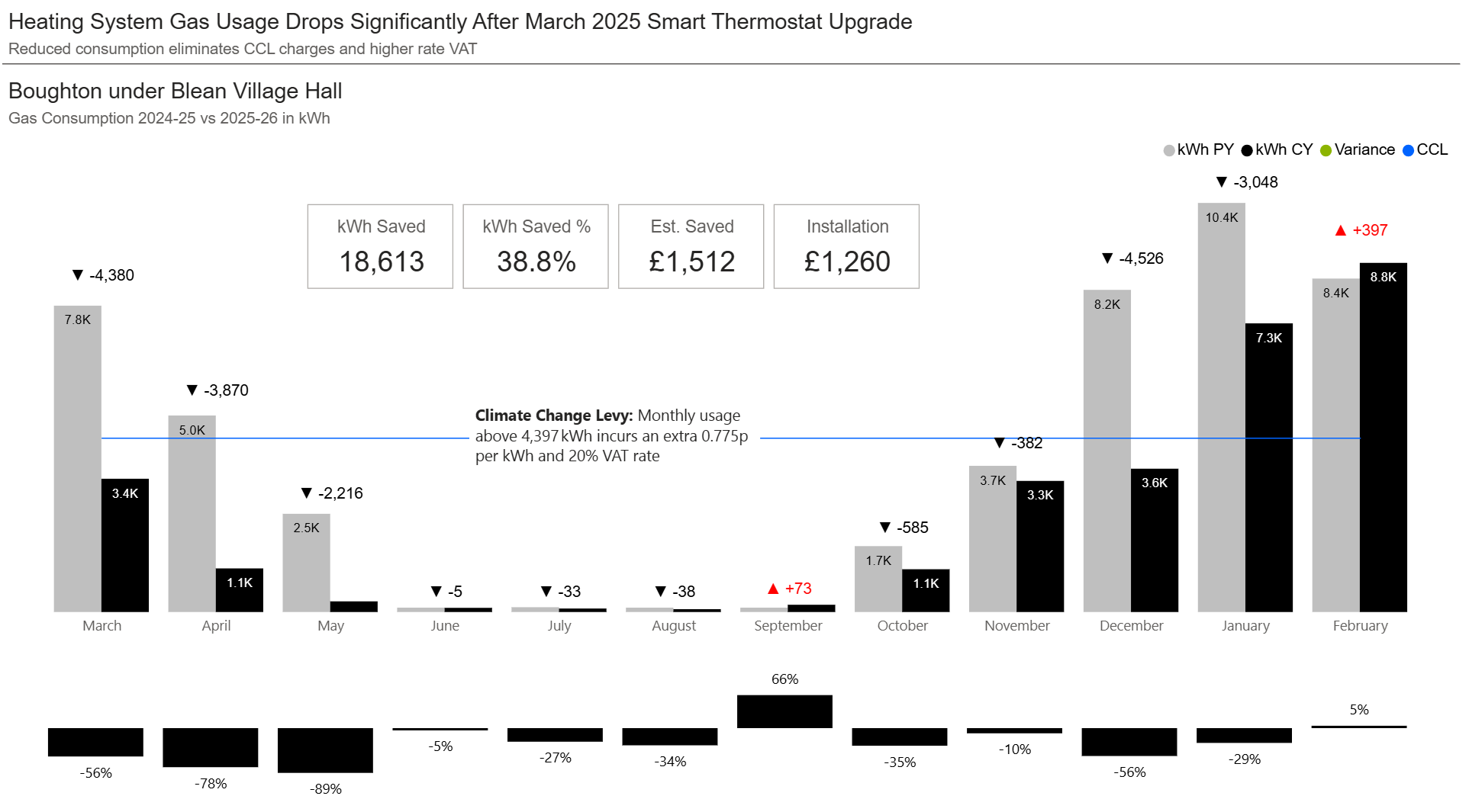 Gas consumption has dropped sharply, enabling the upgrade to pay for itself in under a year.